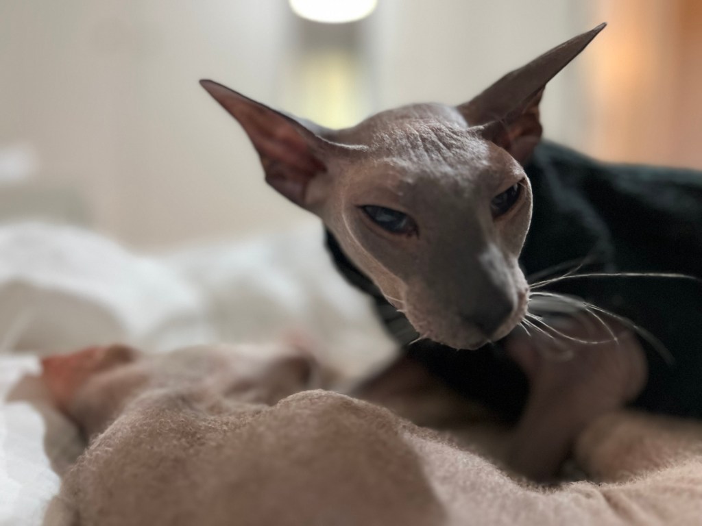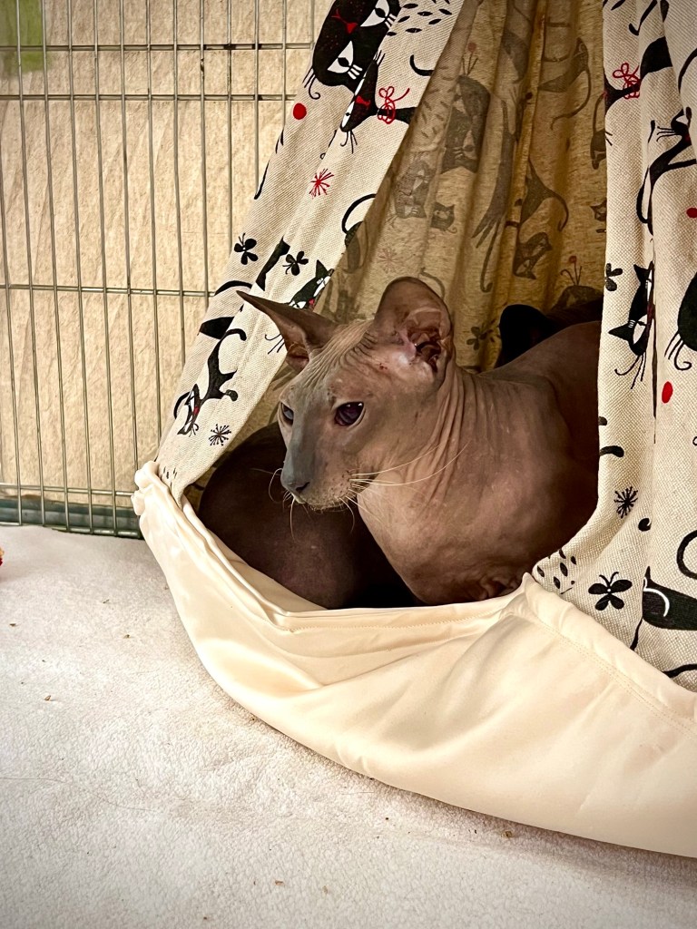 Sourissette est une douce minette nue nĂ©e le 16 octobre 2020. Elle est discrĂšte, affectueuse et bavarde Ă ses heures. Elle adore venir se poser sur nous dans le lit ou sous un plaid sur le canapĂ©. Depuis quâelle a Ă©tĂ© stĂ©rilisĂ©e, elle a de la peine Ă reprendre sa place face aux autres chats de la chatterie et nous aimerions quâelle soit pleinement Ă©panouie dans un nouveau foyer. Elle sâentend trĂšs bien avec les chiens đ¶